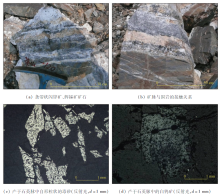 矿区内原生矿石为辉锑矿-黑钨矿-石英脉型, 可细分为细脉浸染状、浸染状、致密块状和角砾状等4种类型, 以细脉浸染状矿石为主要类型, 约占总量的80%。矿石矿物主要有辉锑矿、辉铁锑矿、铁闪锌矿、白钨矿、黑钨矿等, 主要脉石矿物有方解石、石英、萤石、菱锰矿等。矿石结构有自形晶结构(图4(c))、它形晶结构、固熔体分离结晶结构、乳滴状结构等。矿石构造主要为条带状构造(图4(a))、细脉状构造(图4(b))、浸染状构造(图4(d))、晶洞构造等。围岩蚀变主要有硅化、碳酸盐化、高岭土化和夕卡岩化等。其中, 硅化与钨锑矿关系密切, 夕卡岩化主要在矿区北端和深部发育, 与锌铜矿化关系密切。