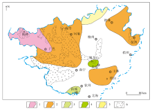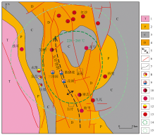 复合型锡石-硫化物锑矿床与燕山晚期花岗岩有关, 主要以共生为主(部分伴生)产出于锡铅锌多金属矿床中, 与燕山期的岩浆热液活动关系密切, 主要分布在河池市南丹县大厂矿田和芒场矿田。有矿产地5个, 其中大型锑矿2个: 南丹县大厂巴力— 龙头山锡多金属矿、南丹县大厂铜坑— 长坡锡多金属矿; 小型锑矿3个: 南丹县大坪铅锌多金属矿、南丹县芒场大山锡多金属矿、南丹县芒场马鞍山铅锌多金属矿。