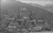 在泥石流的形成条件中, 地形地貌条件和一定储量的松散固体物质是泥石流形成的充分条件, 一定强度的降雨是激发泥石流形成的动力条件, 泥石流产生几率及其规模, 取决于这些条件的综合影响。