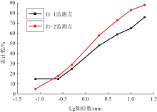 | 图4 水泉沟泥石流堆积扇颗粒累计曲线Fig.4 Accumulative curve for the particles in Shuiquangou debris flow accumulation fan |